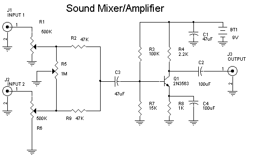 Both Inputs Can Be Independantly Adjusted Using R1 For Input 1 And R6 For Input 2. R5 Controls The Fade. Q1 Provides Gain Of The Combined Signal.